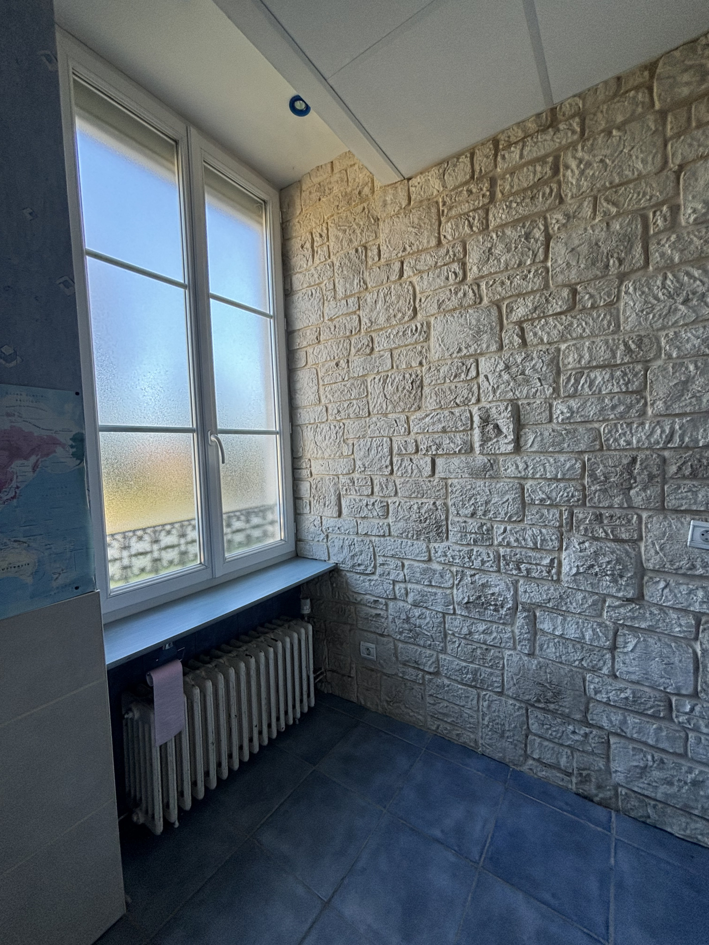 Le logement rénové de 70 m² (loué) comprend trois pièces , toilette, salle d'eau , chauffage gaz de ville . (accès indépendant) et une cour.