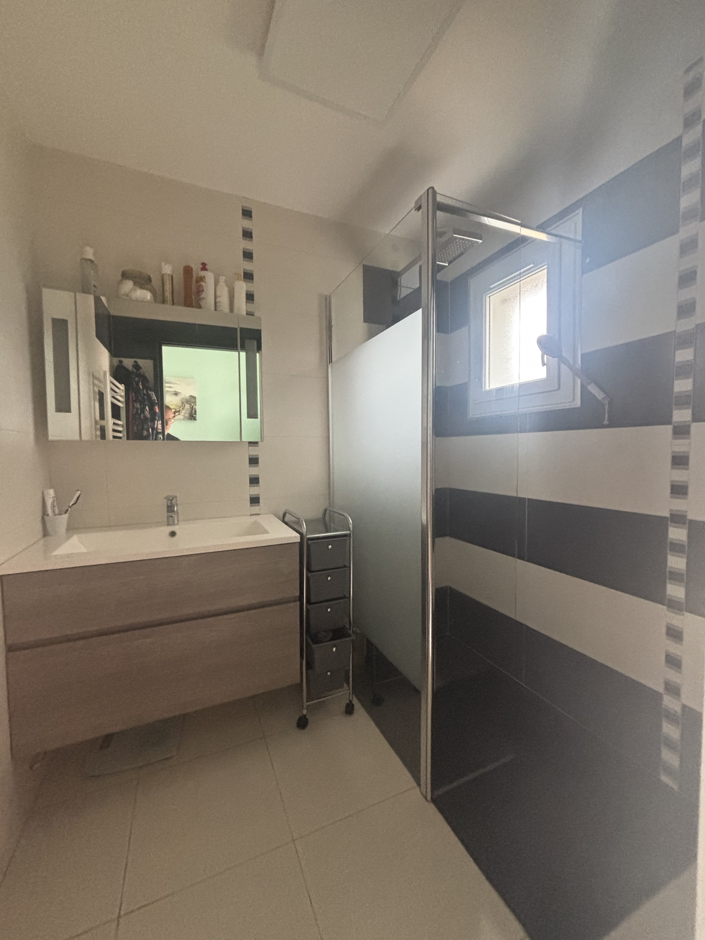 Extérieur : deux terrasses (sol carrelage) dont une à l'arrière avec une pergola, piscine avec un abris de 9m x4m, (synthétique au sol et lames de composite).