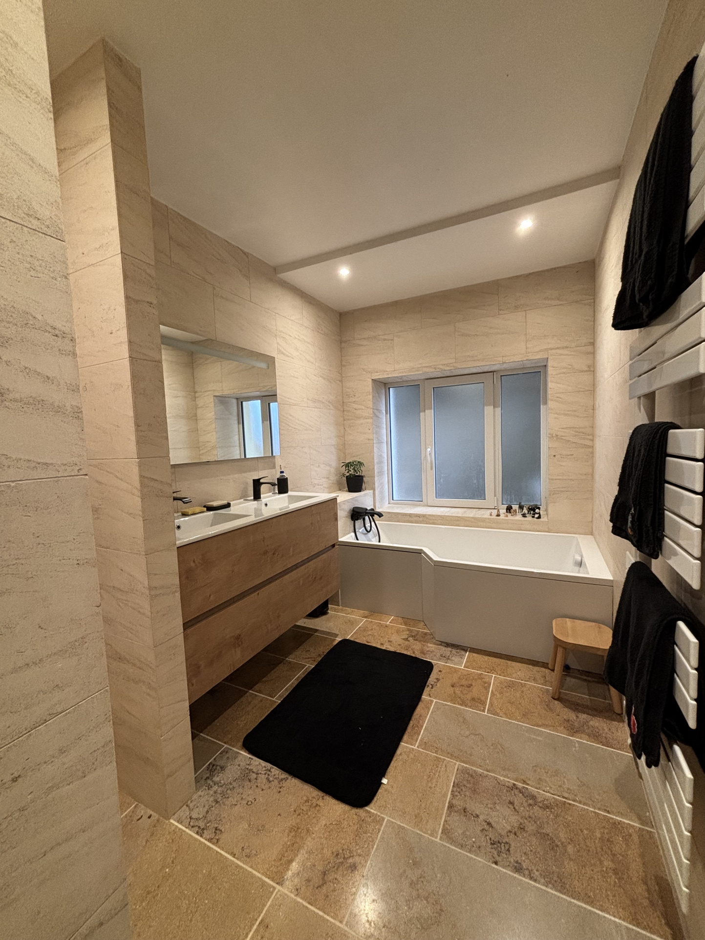 La maison rénovée avec des matériaux nobles apporte chaleur, confort et clarté gràce à ses ouvertures.