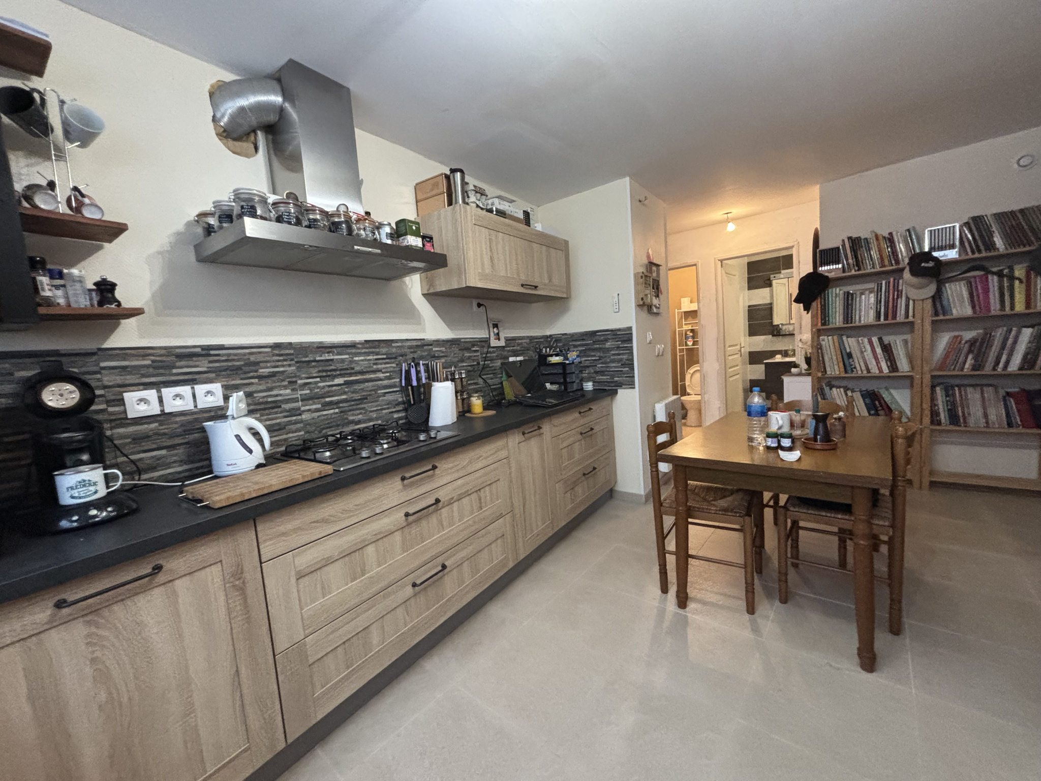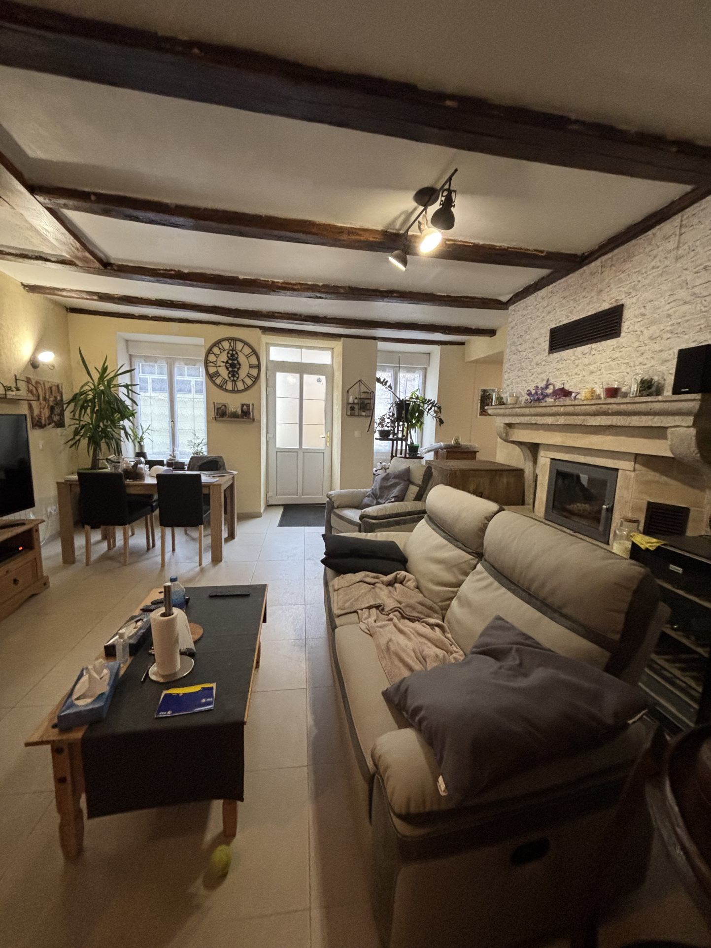 Cette maison rénovée de 92m² est composée d'un salon-salle à manger de 30m² avec insert tubé , un bureau , un toilette ,une salle de douche moderne , une cuisine équipée de 20m² .