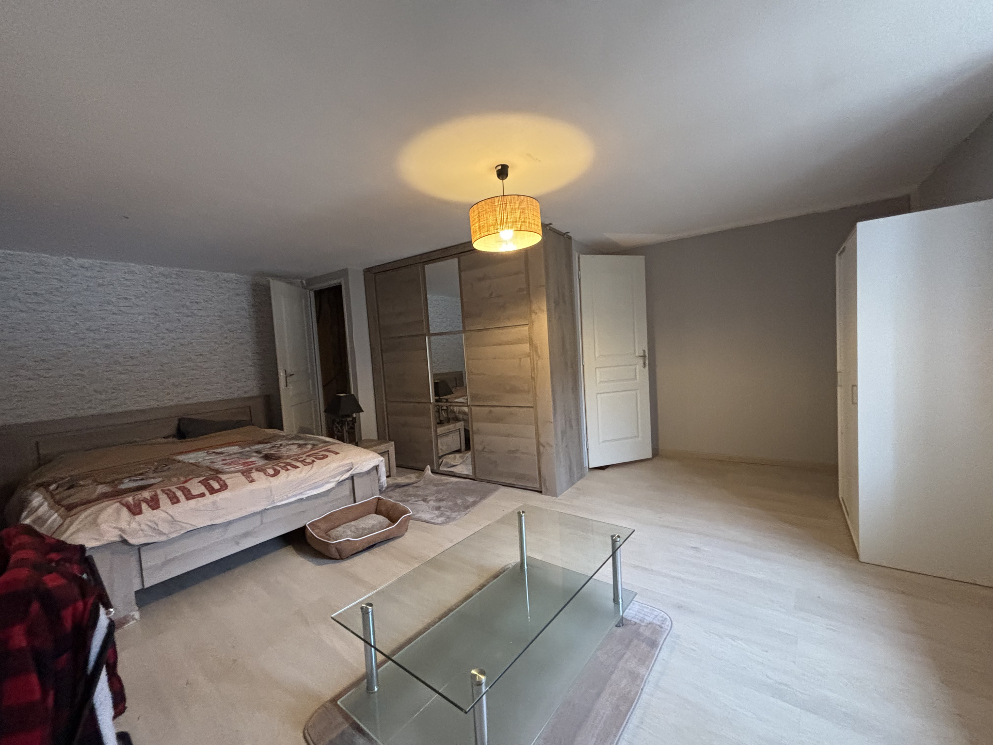 A l'étage une grande chambre de 30m² avec possibilités de créer une suite parentale, un grenier aménageable de 30m².